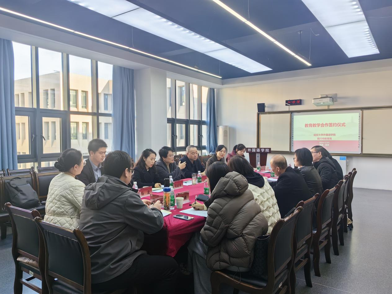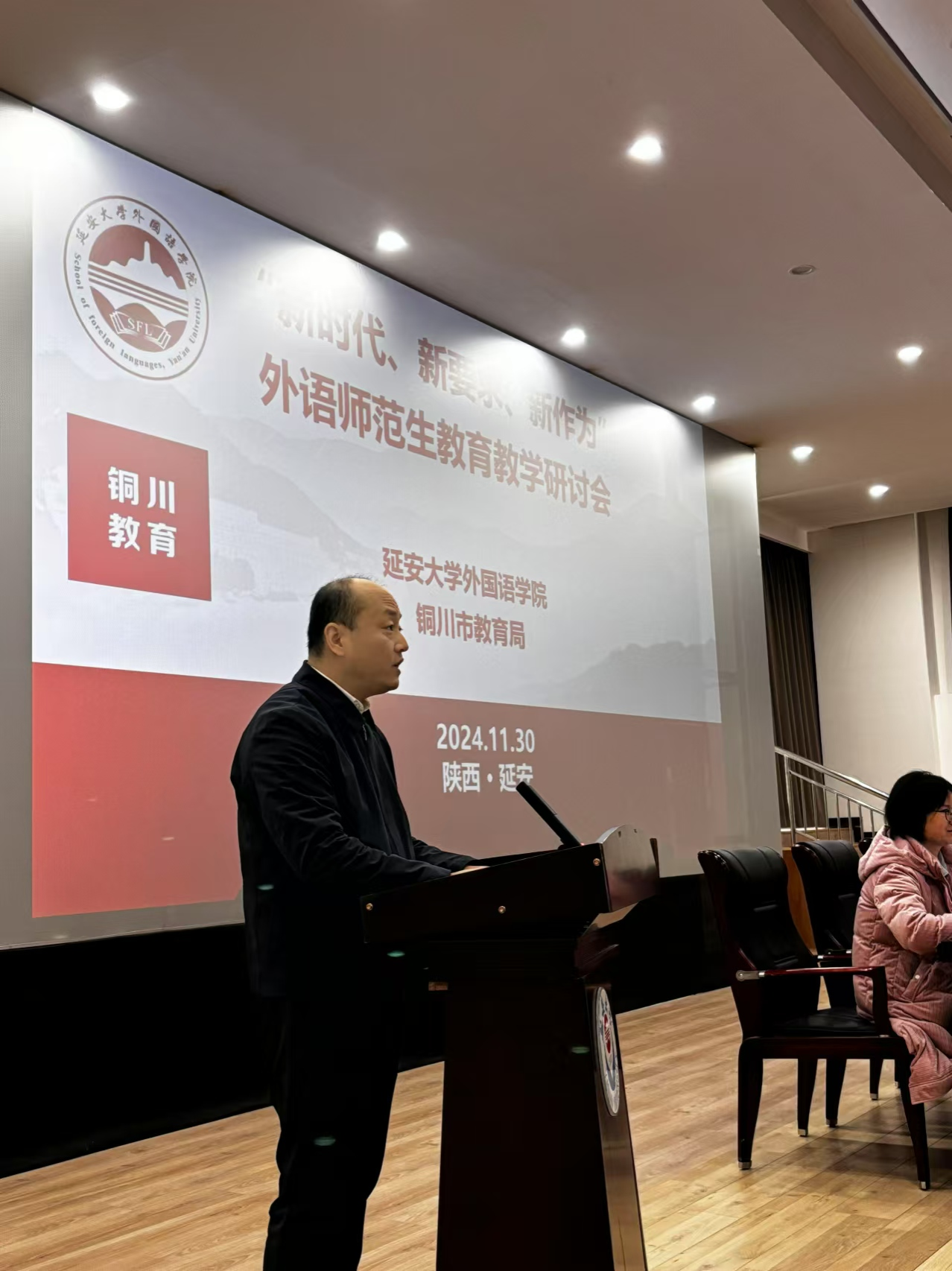 铜川市教育工委副书记赵迎军在发言中盛赞了母校近年来在学科建设、专业发展、人才培养等方面都取得的卓越成就,介绍了铜川市教育局在改善办学条件,加强教师队伍建设,优化教育资源配置等方面推出的一系列举措和取得的显著办学成效。同时他指出,在教育改革发展的进程中,铜川市也面临着诸多挑战与困惑,尤其是在如何进一步培养学生的跨文化交际能力和国际视野、如何加强教育信息化与外语教学的深度融合、创新教学模式与方法、提高课堂教学效率、构建更加完善的教育评价体系等方面,都亟待深入思考与探索。最后,他希望双方能以此次合作为契机,在教育资源共享、教师培训交流、教学科研合作等方面建立长期稳定的合作机制,实现优势互补、互利共赢。