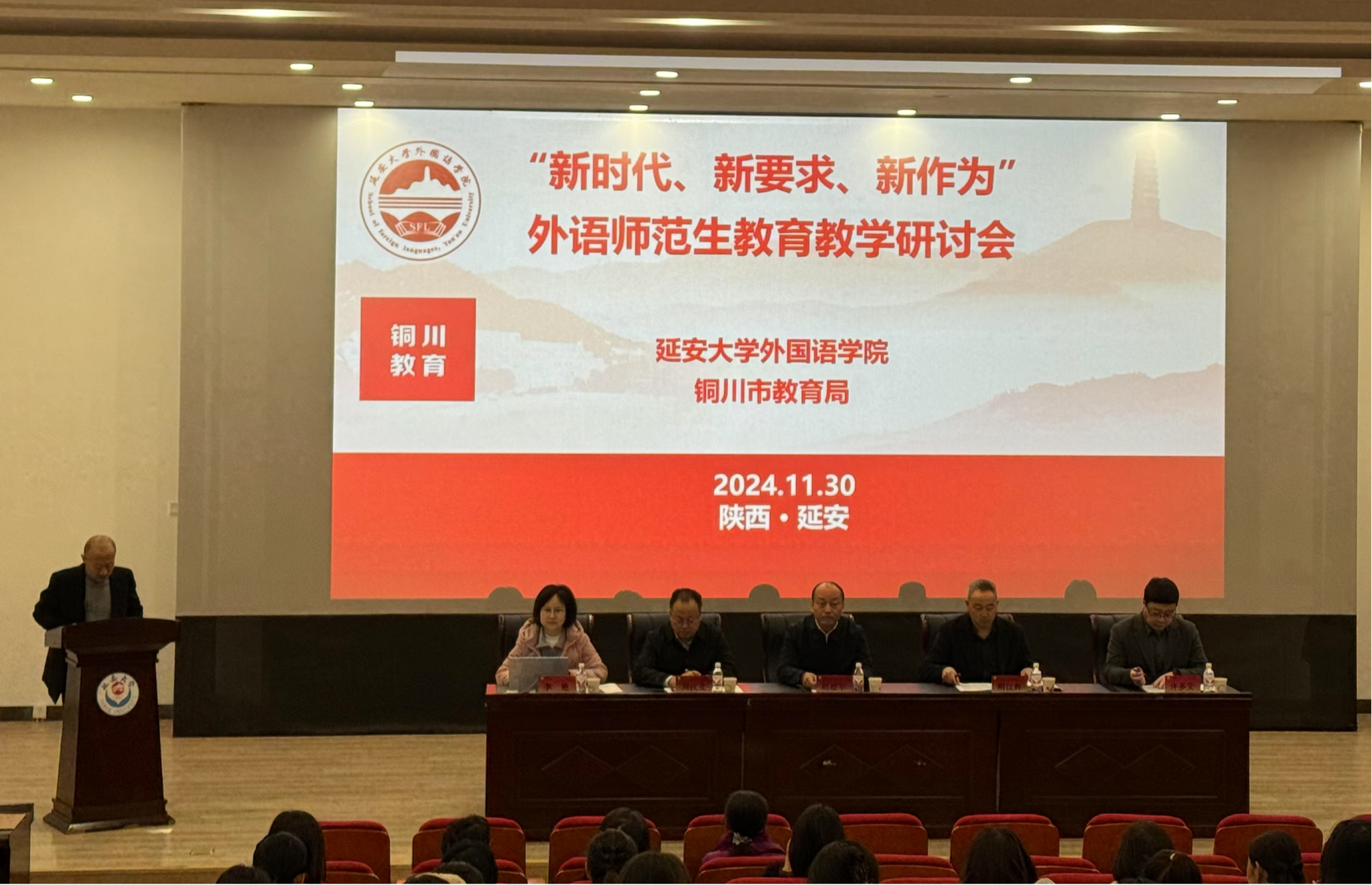 为适应高考综合改革和人才培养的新要求,加强高校与中学之间的沟通与协作,共同探索构建高校和中学协同育人机制,提高人才培养质量,在铜川市教育局的大力支持下,公海5500线路检测于11月30日在大学生活动中心举办了“新时代、新要求、新作为”外语师范生教育教学研讨会。铜川市教育科学研究室副主任阴江辉、铜川市新区景丰中小学校长王喜艳、宜君县高级中学副校长苟亚琴、铜川市第一中学教学一处主任刘汉文、西安交大铜川市实验中学教师发展中心主任马龙、铜川市第一中学封艳老师、耀州中学陈婷老师一行8人在铜川市教育工委副书记赵迎军同志的带领下出席了此次会议,学院英语专业教师、学科教学硕士研究生导师、英语专业全体学生和学科教学硕士研究生300余人出席了研讨会。李世荣副院长和李艳副院长先后主持会议。