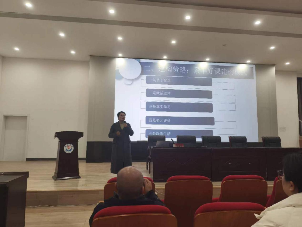 他在报告中指出,教师应该坚持学习,广泛阅读,逐步提升自身的哲学素养、教育理论素养和教学技能素养。教师应该围绕课堂教学的主阵地,瞄准一个目标--核心素养,坚持一个依据--《课标》,基于一个出发点---学情,努力解决一对矛盾---教与学。他强调,课堂必须要体现时代特点,绽放的育人新气象,筑牢“为党育人、为国育才”的崇高使命,确保教师围绕立德树人的目标来教;学生围绕立德树人的目标来学,真正把立德树人融入并贯穿课堂教学全过程;新时代的课堂是立体的、灵动的、超时空的、多样的,是可以突破围墙和固定桌椅束缚的,是学生个性成长和全面发展的生命场域,是学生获取知识技能、提升人格品行的向往之处。