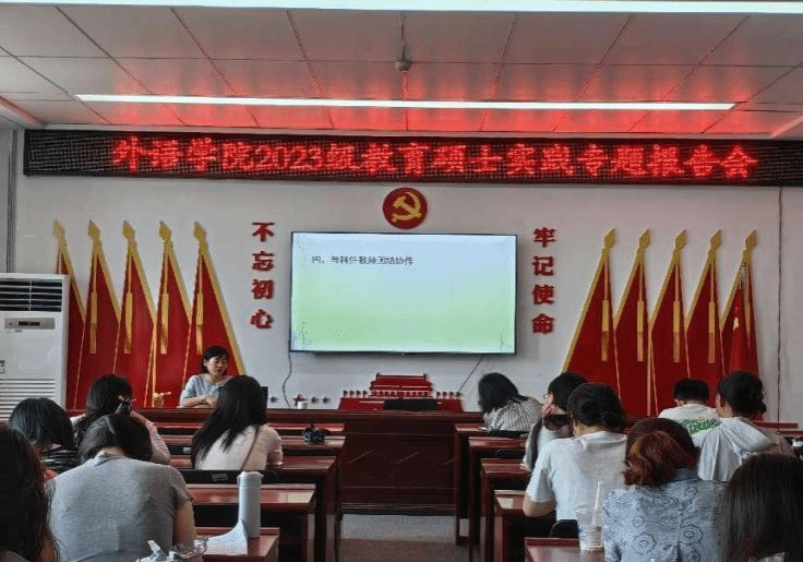 6月25日下午,宝塔区第四中学张学莉老师为我院2023级学科英语专业研究生做了题为“浅谈中学班级管理”的专题报告。张学莉老师深入探讨了班级管理的多个方面,包括如何热爱教育事业、关爱学生、与家长高效沟通以及与科任教师团结协作等。她强调了尊重学生、平等对待每一位学生的重要性,并鼓励大家不断学习,以更好地适应教育工作。