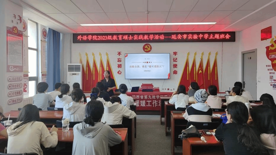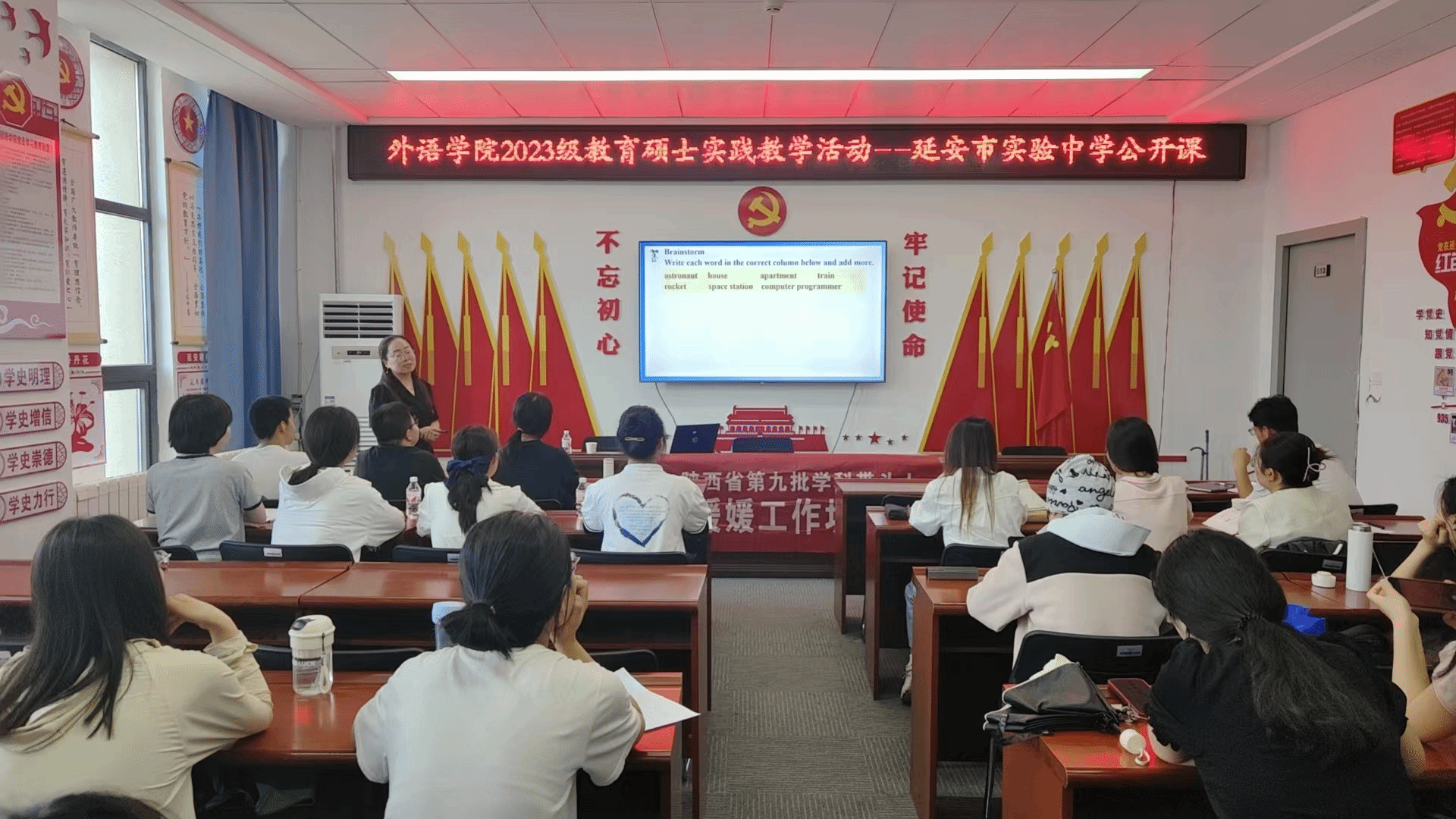 6月21日下午,2023级教育硕士研究生以线上线下相结合的方式参加了延安职业技术学院附属中学教学研讨会。学生们首先观摩了初三年级朱丽娜老师的写作课,整个课堂设计由浅入深、循序渐进,师生互动频繁且高效,有效实现了教学目标。观摩课后,学生们集体参加了教研组评课活动,英语教研组的老师们还对我院的研究生同学提出了听评课以及教学建议,学生们汲取了宝贵的教学反思,有助于提高研究生的教育教学实践能力。