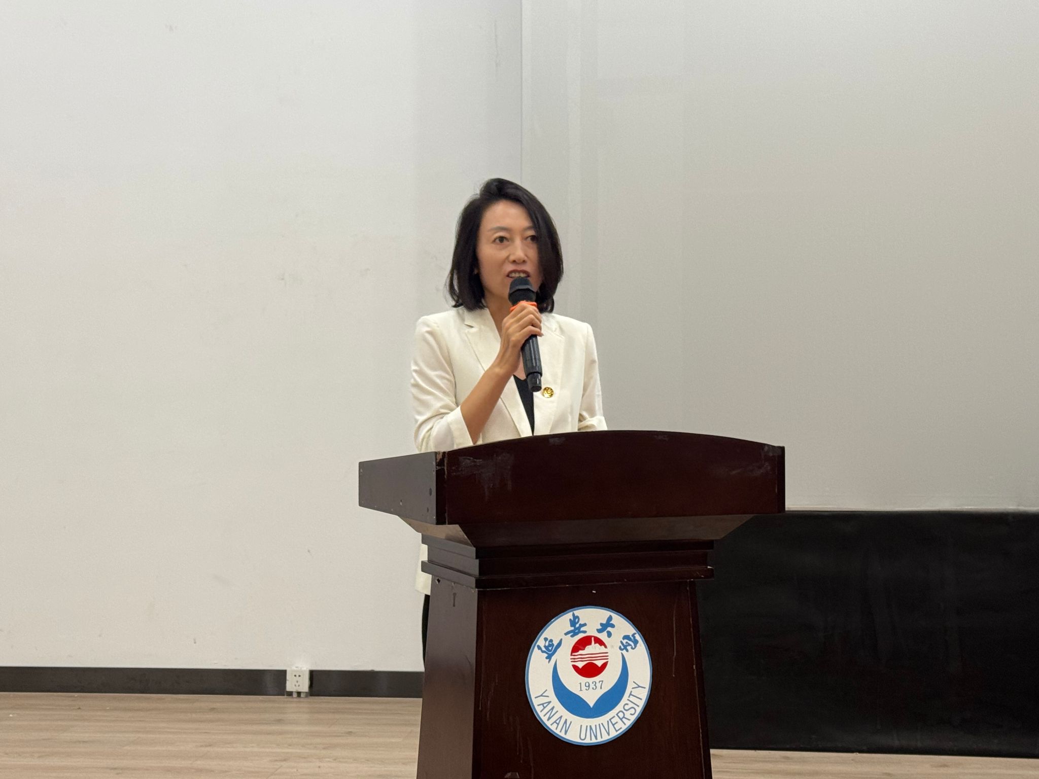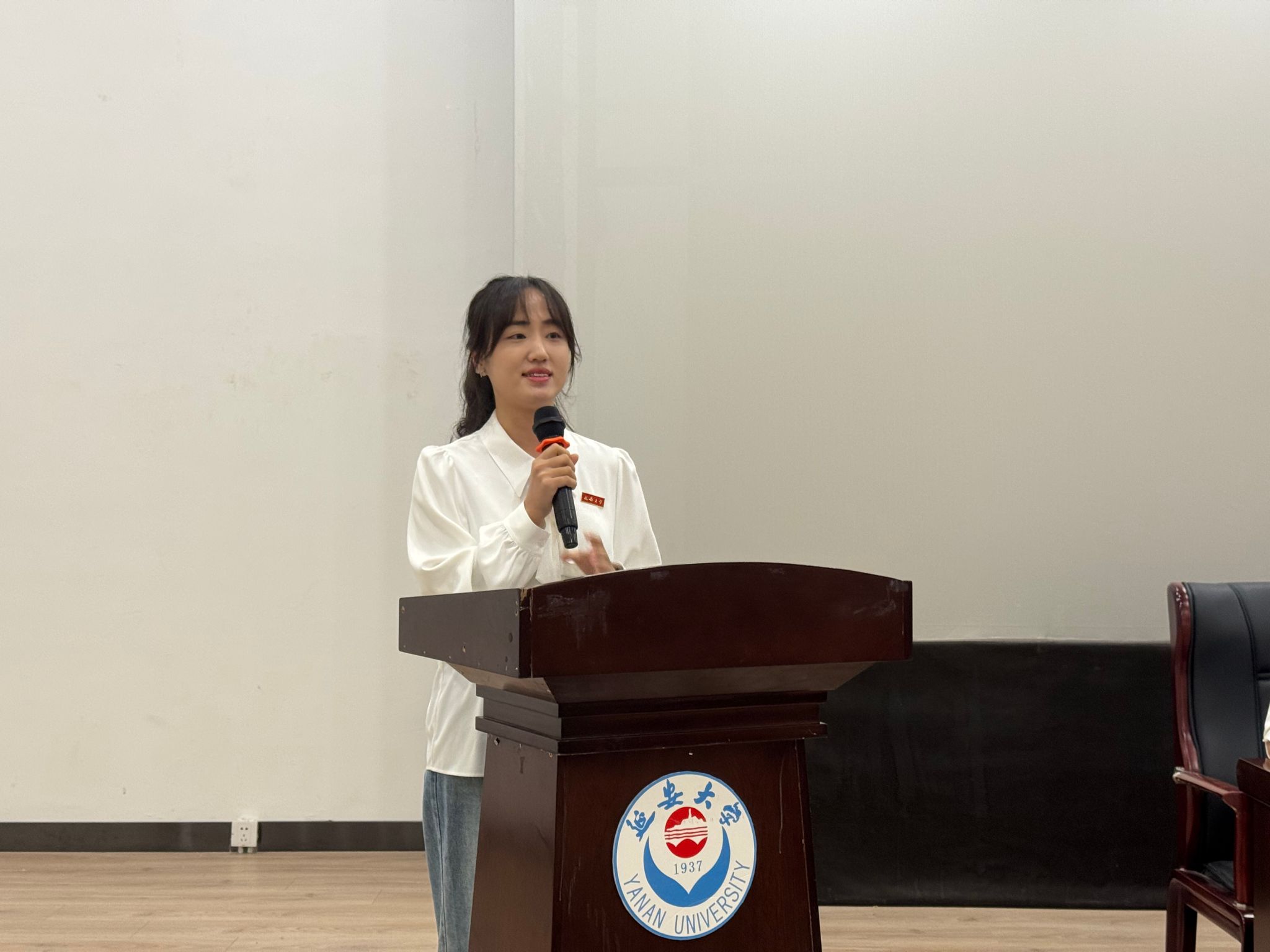 开学典礼在国歌声中正式开始。首先,四位学生代表先后发言,研究生代表白洋丽结合自身学习经历,分享了读研期间的成长与感悟,她动情地感谢学院和老师的悉心培养;本科生代表王宇凡则以《如何高效规划大学生活》为主题,分享了实用的学习经验;研究生新生代表刘倩和本科生新生代表张玉婕表态要以“延安精神”为指引,用“立身为公,学以致用”的校训要求自己,在学术道路上脚踏实地、追求真理,勇敢试错,突破自我,在未来的学习和生活中,不惧挑战,绽放青春光彩。
