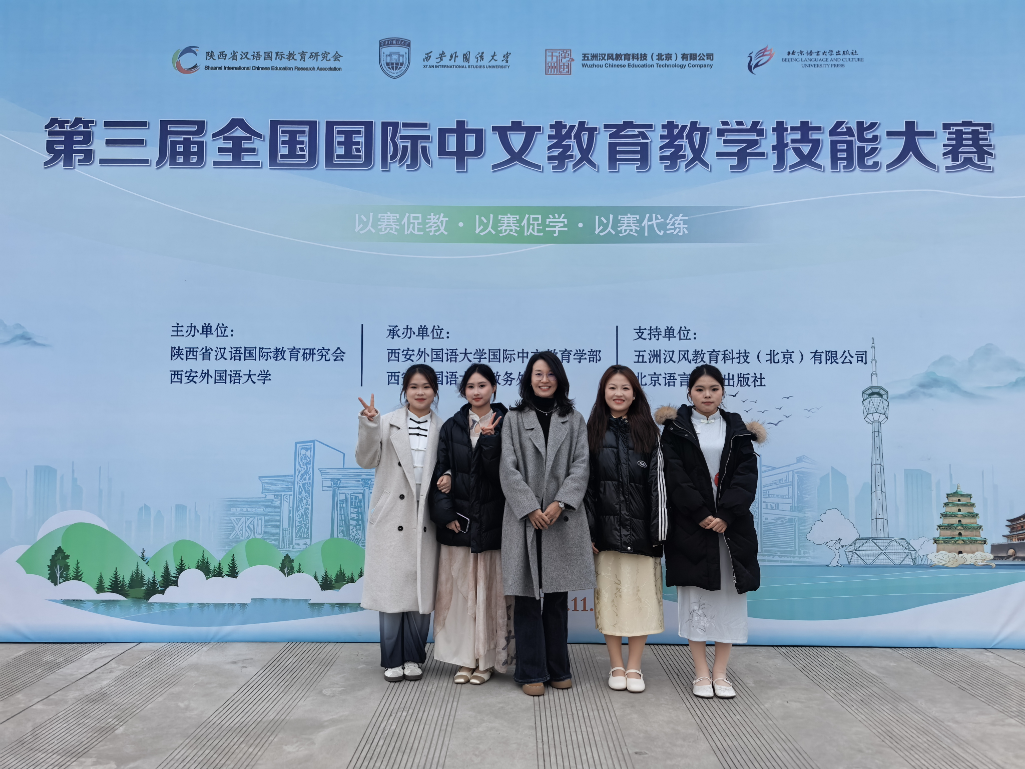 11月21日至23日,全国第三届国际中文教育教学技能大赛在西安外国语大学举行。我院2024级汉语国际教育专业学生门园园、李鑫、马雪祯、张雅枫在王雨薇副教授的指导下,充分发挥专业特长,运用数智工具,设计不同场景的跨文化语言教学课堂,展现了扎实的语言教学基本功。门园园从全国126所院校的484名选手中脱颖而出,荣获全国三等奖,其余同学荣获优秀奖,王雨薇获“杰出指导教师”奖,充分展现了我校在该专业人才培养方面的成果。