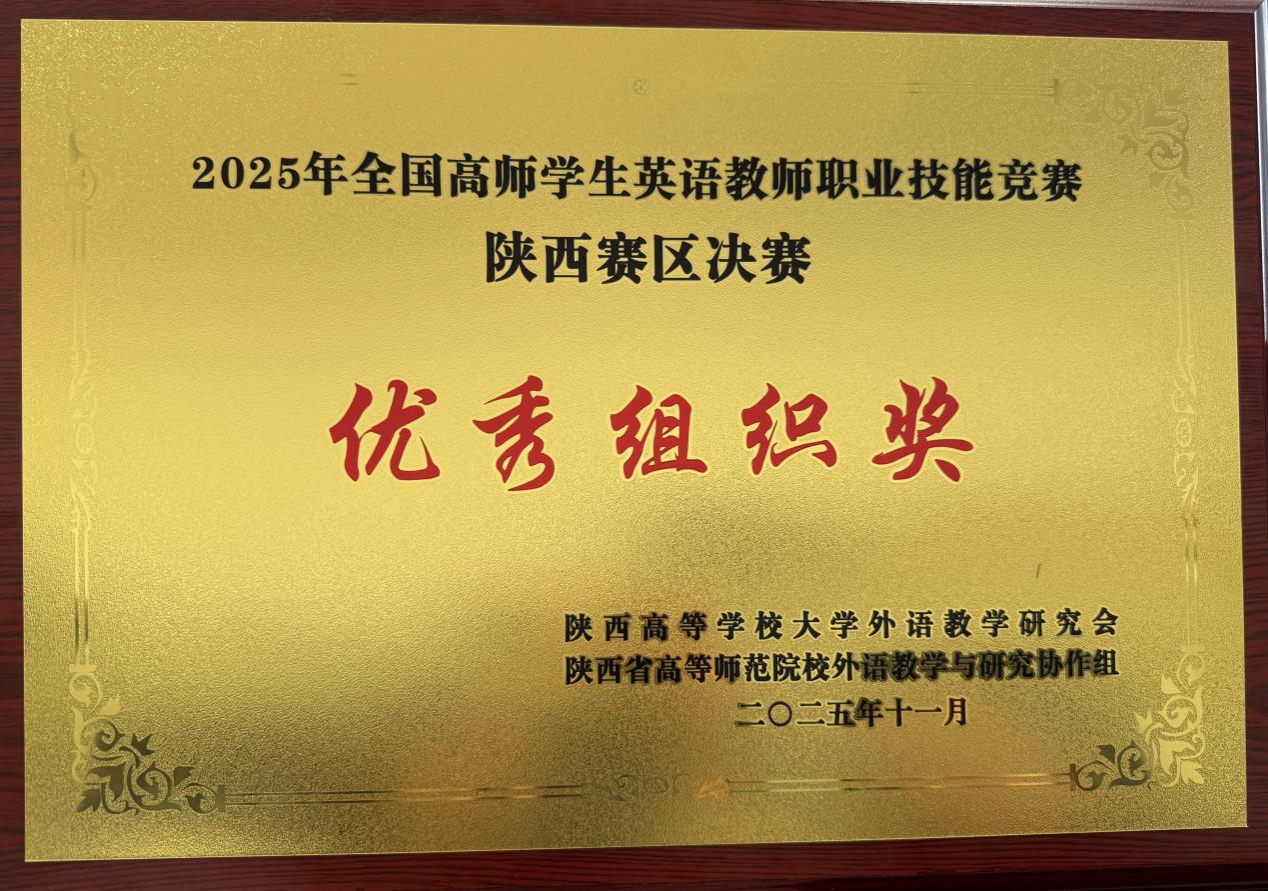 2025年11月28日至29日,全国高师学生英语教师职业技能竞赛陕西赛区决赛在咸阳师范学院隆重举行。来自西安外国语大学、公海贵宾会5500iii等18所高校的213名选手参加了陕西赛区决赛。经过激烈角逐,我院本科生苗希伟荣获竞赛一级一等奖,张梦梦、罗梦琪荣获竞赛一级二等奖;本科生冯思雨、研究生张佳宁、高欣宇、韩杨、、樊璟曦、边梓瑜、李杉、于澄荣获竞赛二级一等奖,研究生刘倩、吴玥茹、刘晶、张艺、康盈科荣获竞赛二级二等奖,充分展现了我院英语师范生的优秀教学实践能力与综合素养。我校荣获陕西赛区“优秀组织奖”。