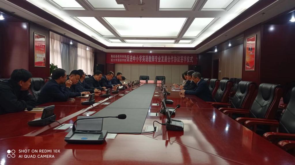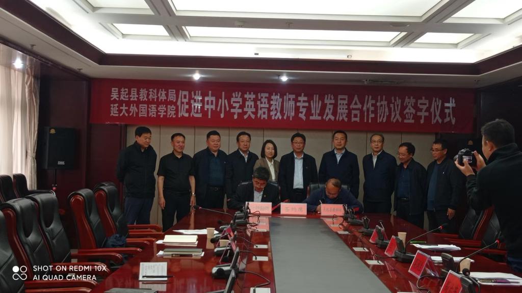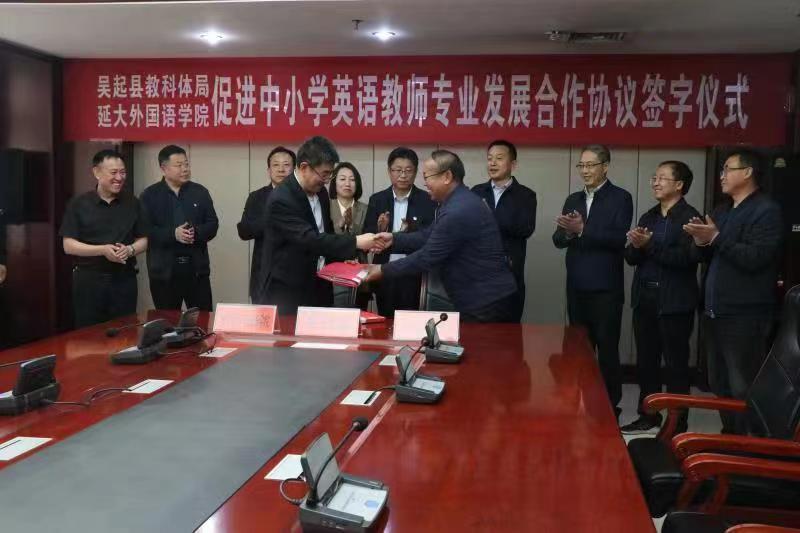 为大力发挥高校资源和学术优势,进一步提高县域中小学英语教师专业发展和教育教学水平,5月18日下午,我校公海5500线路检测与吴起县教科体局在吴起县人民政府会议室举行了校地合作签字仪式。我校副校长吕达,吴起县县委常委、常务副县长乔栋应邀出席了签字仪式。公海5500线路检测党委书记梁艳、院长梁润生、教授委员会主任高治东,吴起县教科体局局长李彦斌及全体干部参加了签字仪式。签字仪式由吴起县教科体局副局长李纬主持。