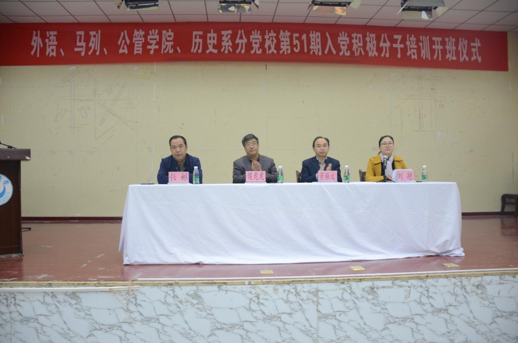 根据公海贵宾会5500iii党校统一安排,10月28日上午8:30,外语、马列、公管学院和历史系在外院礼堂举行了第51期入党积极分子培训开班仪式。外语学院党委书记董振文、公管学院党委书记侯虎虎、马列学院党委副书记张彬、历史系党总支副书记刘艳以及4个单位200余名入党积极分子参加了本次开班仪式。仪式由刘艳老师主持。