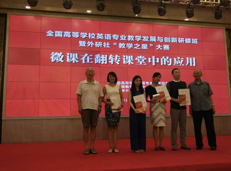 2015年7月30-31日,第三届外研社“教学之星”大赛在经过网上初赛之后,入选77名英语专业教师前往湖南省长沙市参加“微课在翻转课堂中的应用(英语专业组)”现场教学大赛,经过两轮激烈角逐后,我院青年教师王黎娜以扎实的语言功底、巧妙的课堂设计和沉稳的现场表现,得到同行与评委专家的高度赞誉,获得英语专业组亚军,并受聘为外研社Unipus在线成长顾问。