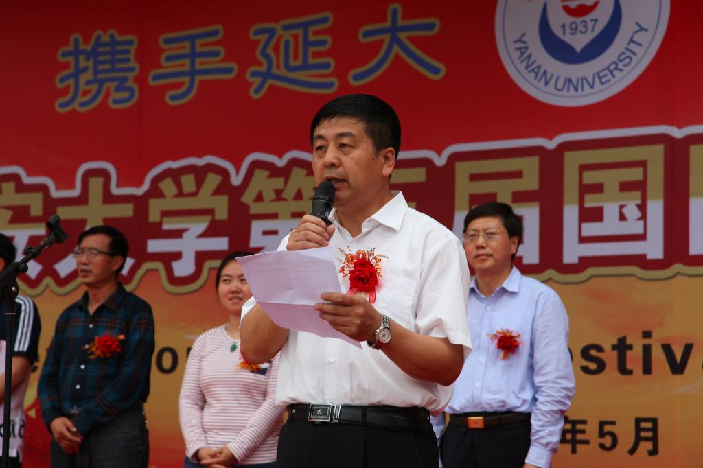 5月29日下午,由我院与国际处、联合主办,体育学院、文学院、历史文化学院、公管学院协办的公海贵宾会5500iii第五届校园国际文化交流节在窑洞广场开幕。我校校长张金锁、副校长许静洪,美国晨星基金会大学生代表团领队,白俄罗斯国立文化艺术大学代表斯维特兰娜及瓦吉姆、西北工业大学国际处领队张卫红、榆林学院国际处处长高吉利、我校教务处、学工部、校团委、相关学院负责人、公海5500线路检测负责人出席了开幕式,来自美国、白俄罗斯、西北工业大学、榆林学院的大学生访问团,以及我校部分学院的师生参加了开幕式。开幕式由我校国际处处长梁润生主持。