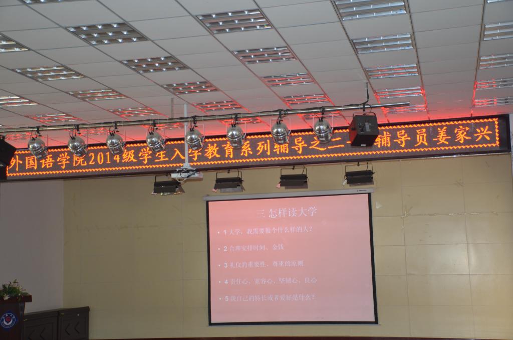 为帮助新生尽快适应大学生活,明确大学学习目标,11月27下午2点,辅导员姜家兴老师在小礼堂为2014级新生作了新生入学教育系列辅导课之“我的大学我做主”。