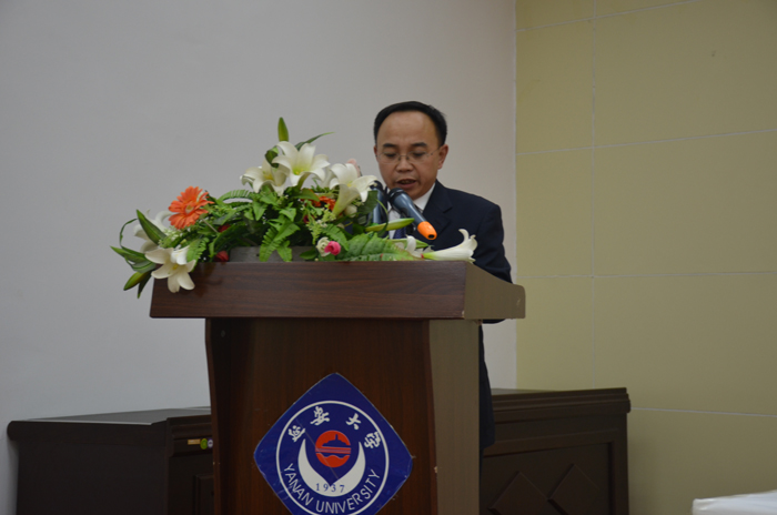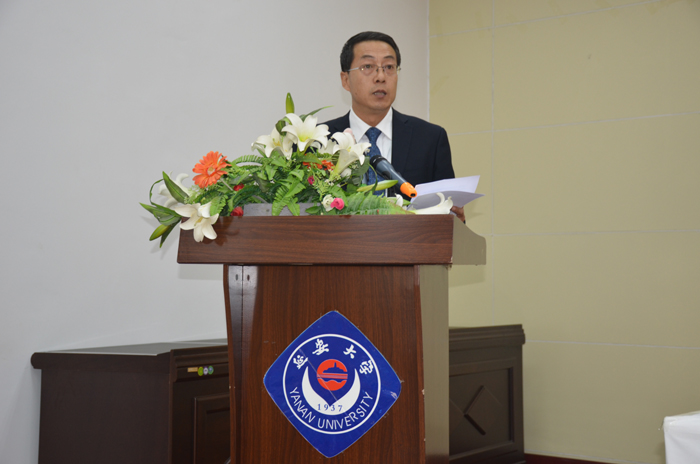 教学工作会议在雄壮的国歌声中开幕,校党委委员、纪委书记王顺代表学校致辞。王顺书记在致辞中简要回顾了我校外语教学的历史,对外语学院在教学方面取得的成就予以肯定,希望外语学院全体教职工励精图治,艰苦奋斗,为我校外语教育教学工作开辟新的局面。