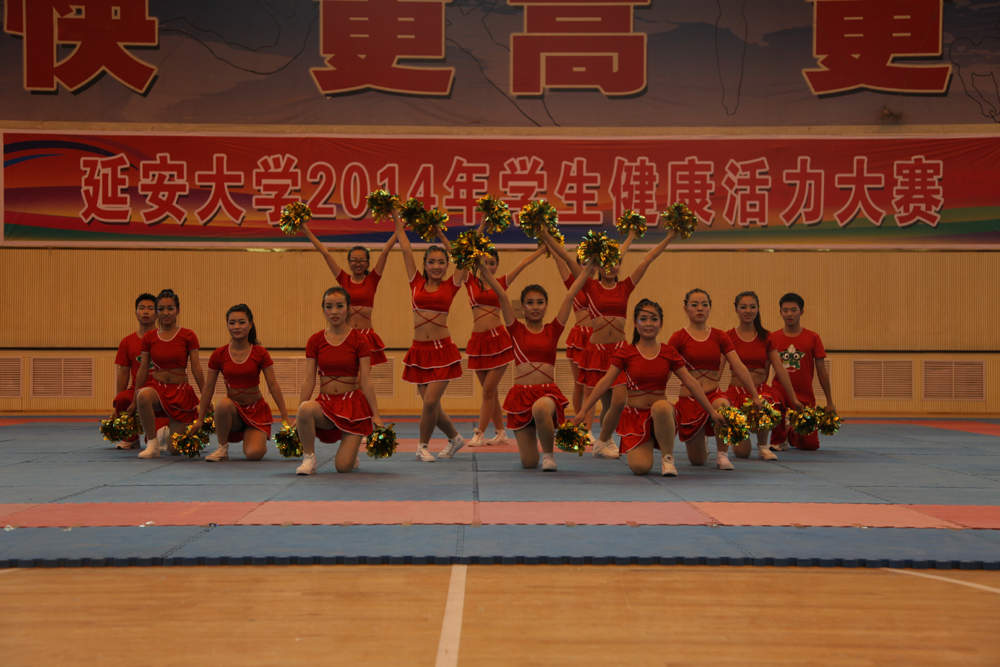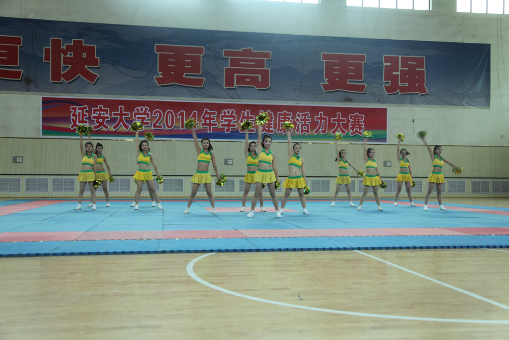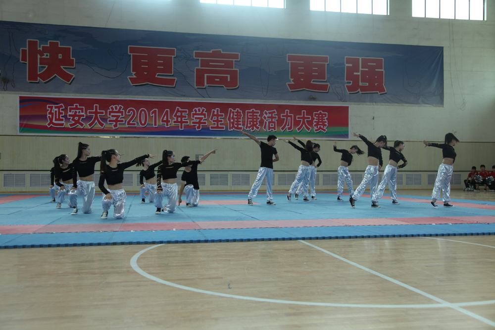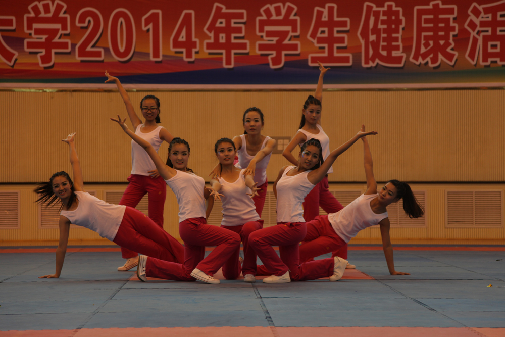 5月24日下午,我校2014年健康活力大赛在校体育馆圆满结束,全校共有13个学院带来的45个单项节目参赛。我院代表队共有队员14人,共参加了3个必选项目:健身健美操四级、啦啦操和街舞,1个自选项目:自编套路(花球)的比赛。