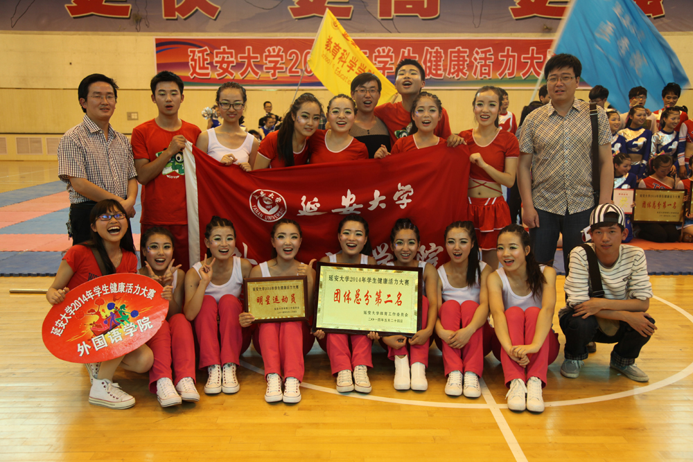 队员们凭借前期的精心准备和赛场上的稳定发挥,充分展示了外院学子健康、向上、靓丽、活泼的青春风采,最终获得健美操四级第一名、啦啦操和自编套路(花球)第二名、街舞第三名以及团体总分第二名的好成绩,我院队员刘倩娜同学被评为2014年健康活力大赛“明星运动员”。