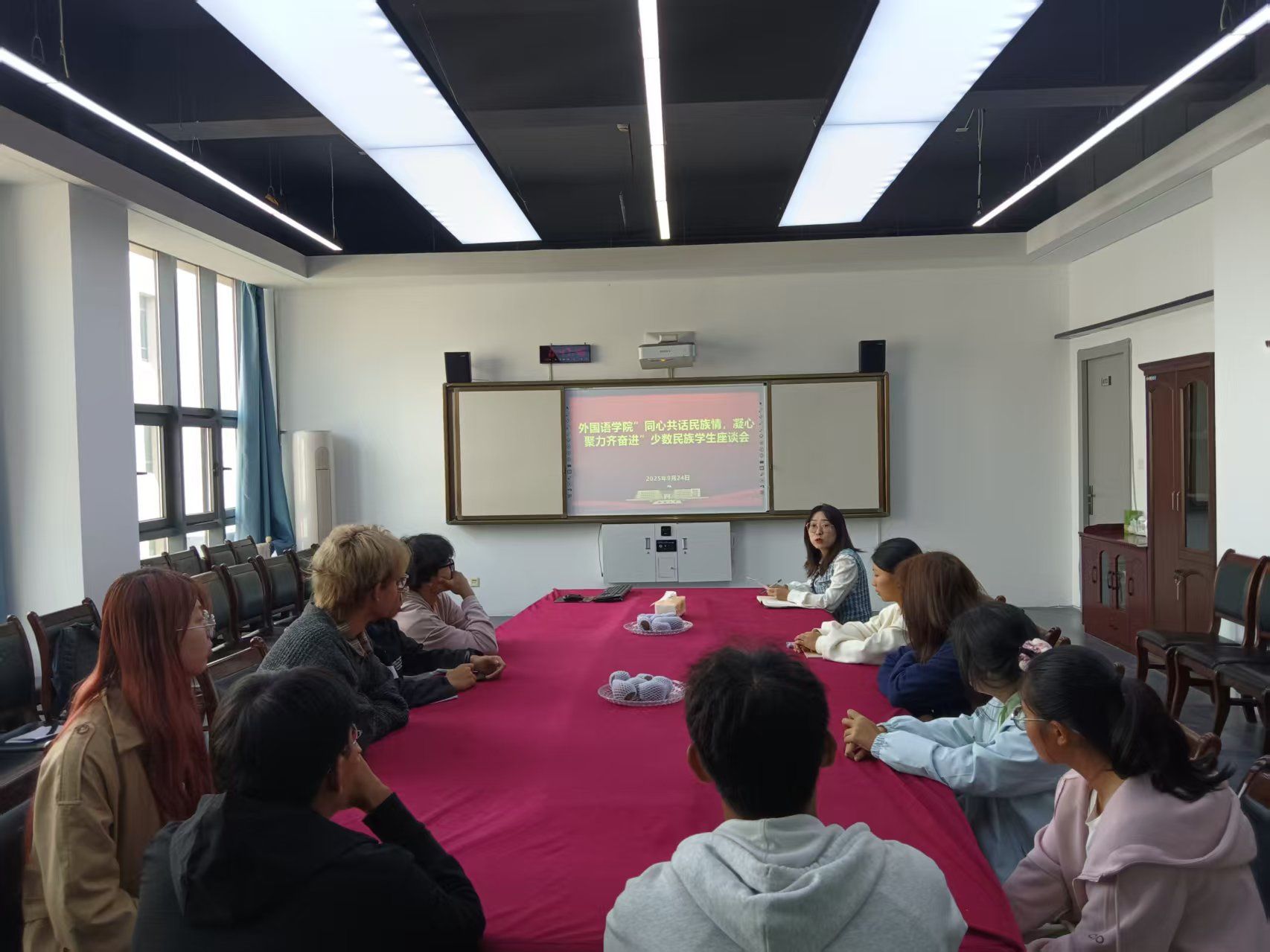 9月24日上午,我院在外语楼413会议室举办“同心共话民族情,凝心聚力齐奋进”少数民族学生座谈会。来自回族、土家族等多个民族的20余名学生代表参加。座谈会由学院组织员徐洁主持。