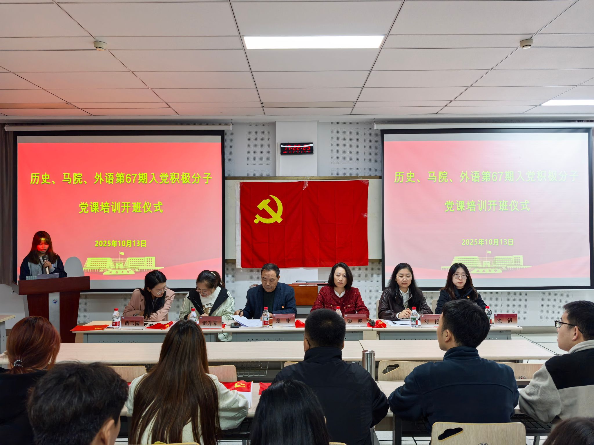 仪式在庄严的《国际歌》中拉开序幕。首先,历史文化学院党委副书记刘艳宣读了本期入党积极分子培训班的通知及相关事宜,明确了培训目标、课程安排、纪律要求与考核方式,要求全体学员严格遵守培训纪律,确保学习成效。