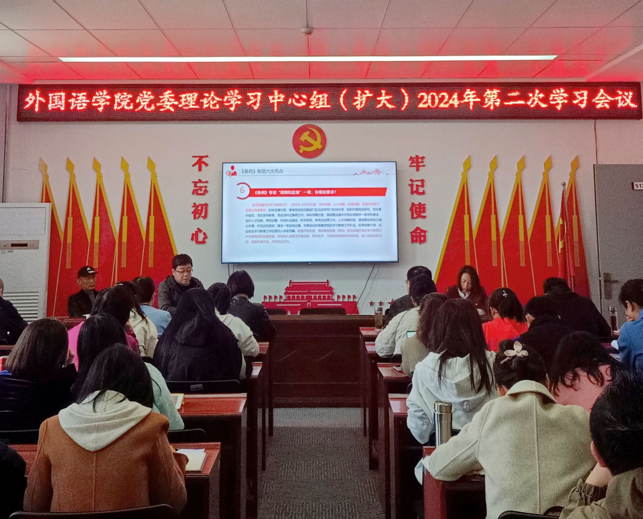 3月27日下午,我院在学院党员活动室举行了理论学习中心组(扩大)2024年第二次学习会议。学院领导班子、全体教工党员参加了会议。会议由院党委书记梁艳主持。