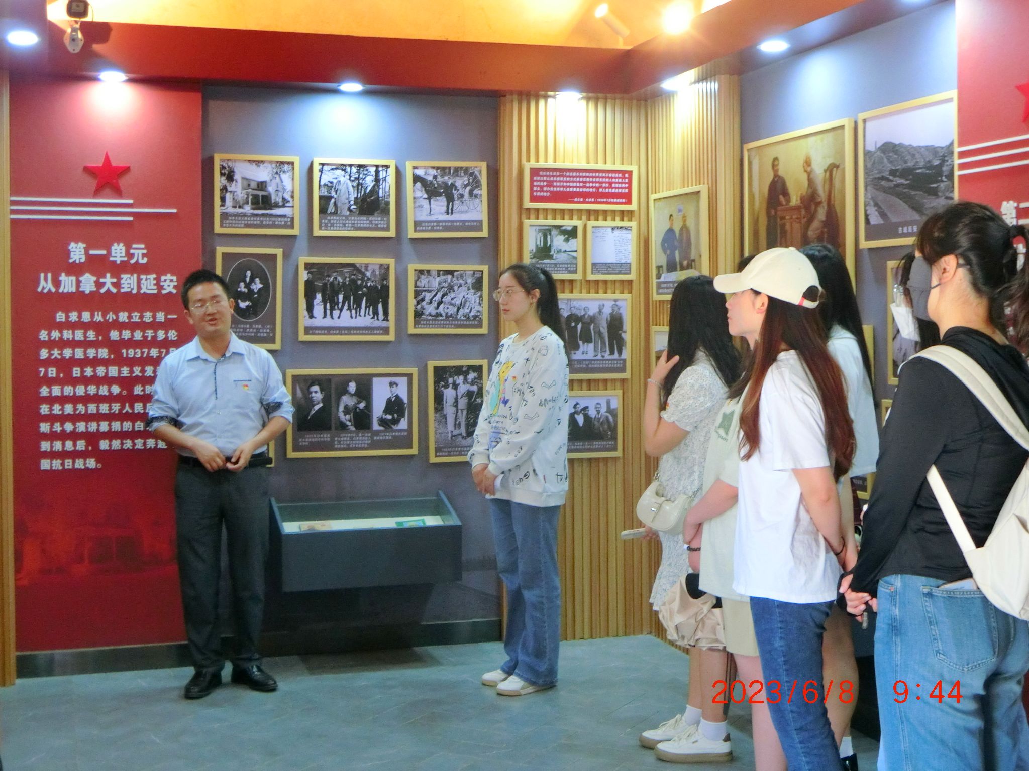 首先,全体在讲解员的带领下参观了毛泽东、周恩来、朱德等领导人的旧居及红军参谋部旧址;随后,党支部书记姜家兴作了题为《伟大的国际共产主义战士——白求恩》的现场教学;接着,何金炎、王悦等同学用中英文分享了红色革命故事,曹静、王梦用中英文朗诵了《纪念白求恩》;最后,大家举行了重温入党誓词仪式。