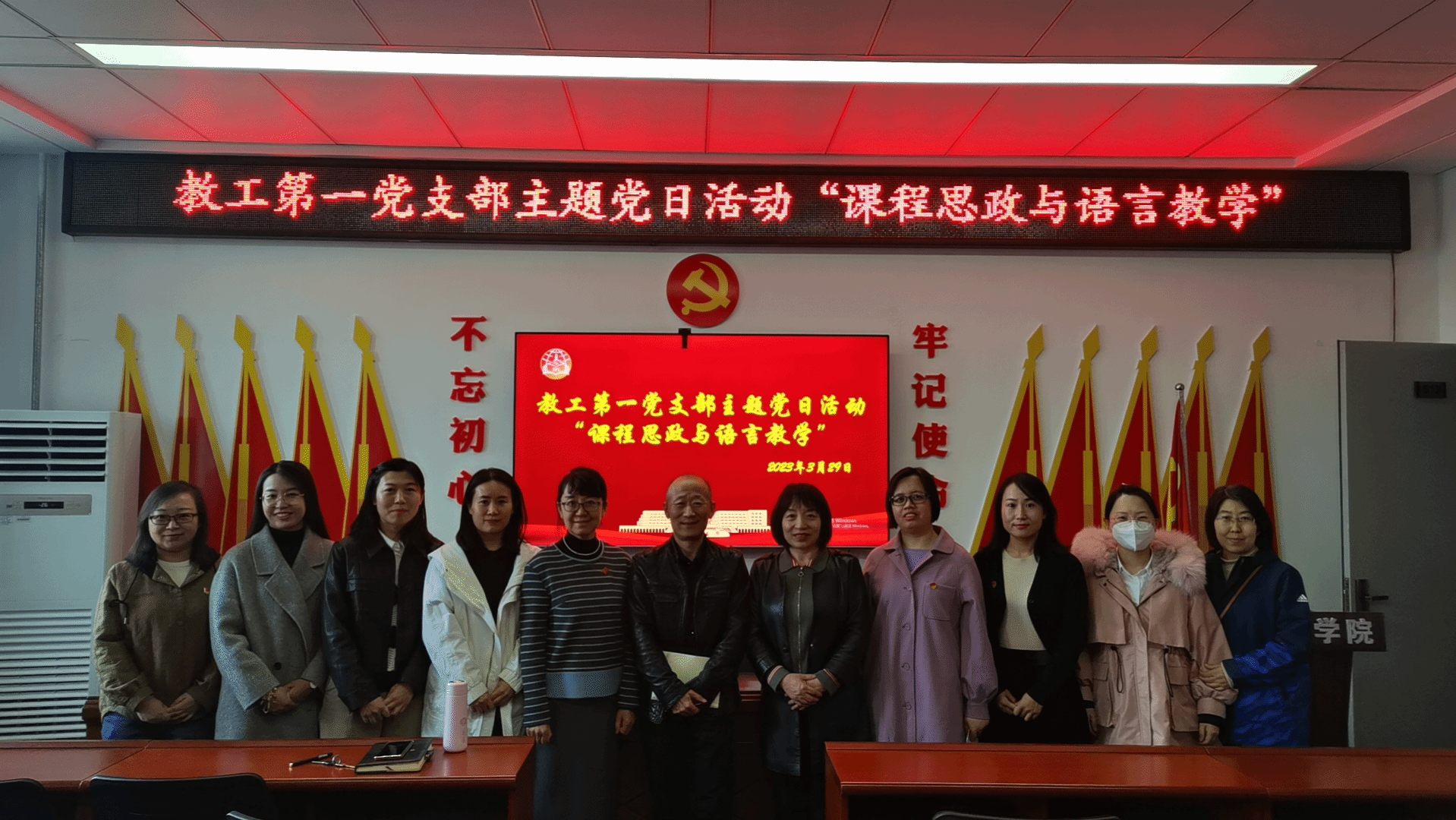 有意识的融入课程思政元素;二是今后的主题党日活动将政治理论学习教育与外语专业相结合,进一步优化“党建+专业”的特色党建模式,既进行爱国主义教育,又加强了专业学习。