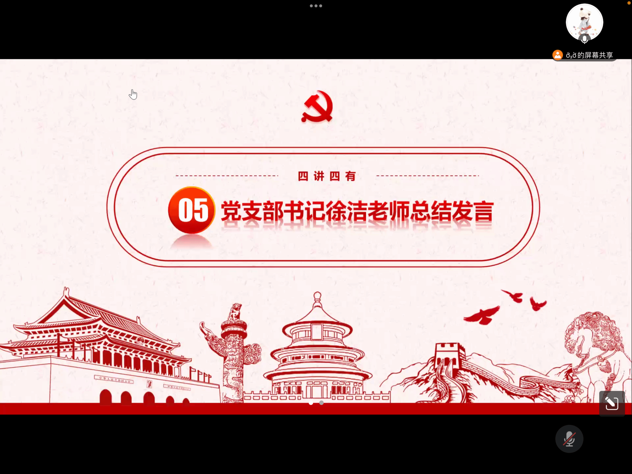 最后,本科生党支部书记徐洁老师进行总结发言。指出批评与自我批评是党的三大优良作风之一,是保持党员先进性的有力武器,要规范党内组织生活程序,充分认识自身不足,查摆问题,明确改正方向,进行改进优化。希望每一位党员同志严格自我修养,树立终身学习的意识,常学常新。并能以此次组织生活会为契机,振奋精神、凝心聚力,在生活中充分发挥党员先锋模范作用,牢记党员身份,不断强化党员意识,更好地为人民服务。