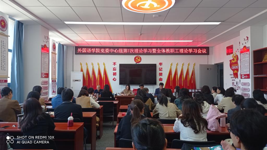 首先,梁艳介绍了召开本次会议的目的和基本要求,传达了学校庆祝建校85周年座谈会会议精神和主要内容;随后,党委副书记许多文带领大家重温了习近平总书记对我校建校80周年的批示,学习了我校落实批示精神的相关举措和取得成果;接着,李艳、雷坤、徐洁、刘娟、吕娜等教师代表结合自身工作、学习实际围绕“弘扬延安精神,勇于改革创新”主题作了发言;副院长李世荣领学了《新时代党的作风建设》之“党的作风就是党的形象”内容要点。院长梁润生在讲话中指出,要以本次理论学习教育会议为契机,认真了解学院当前面临的机遇与挑战,进一步强化责任担当,加强教育教学改革,着力提升学院科研能力和科研质量,将自己的个人发展与学院的前途紧密结合起来,提早谋划、科学规划、精细策划,着力破解当前学院发展过程中的现实瓶颈,真正实现专业上强特色、人才培养上上水平,为谱写学校高质量发展作出外院人应有的贡献。