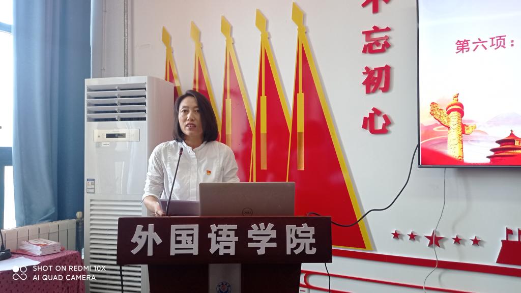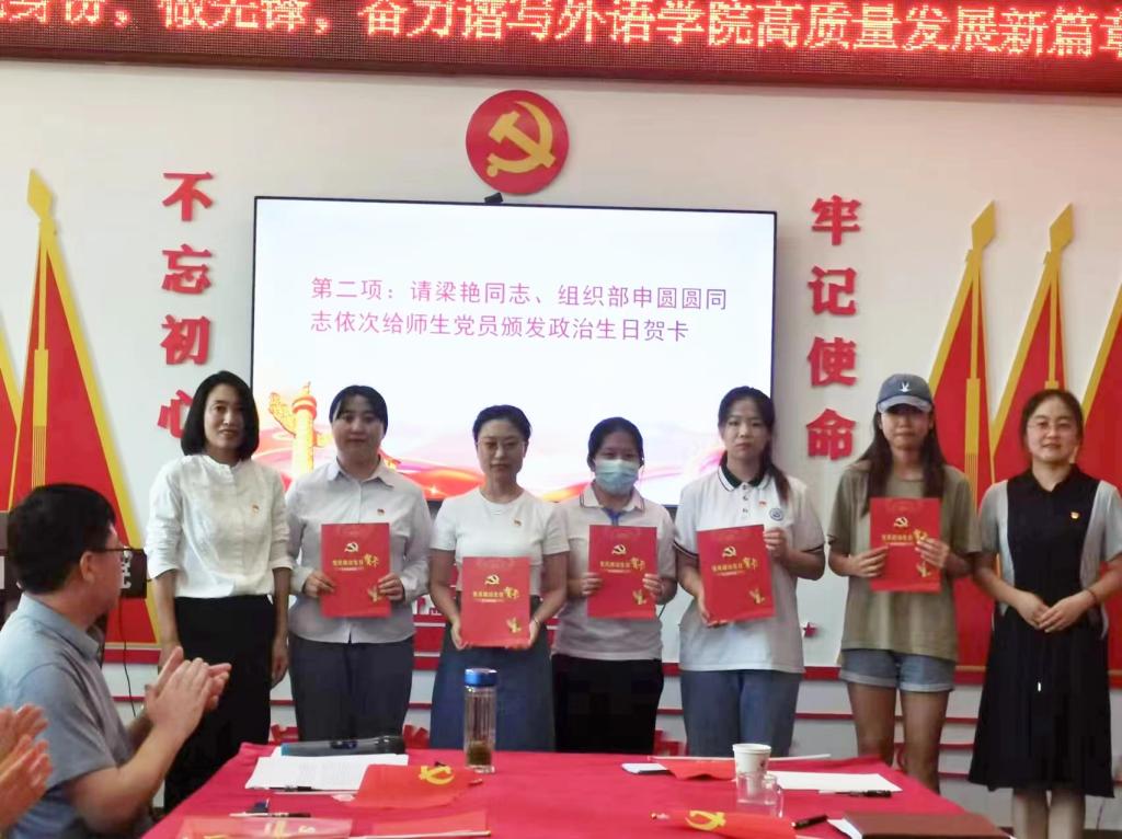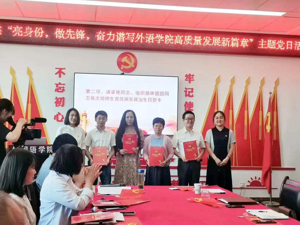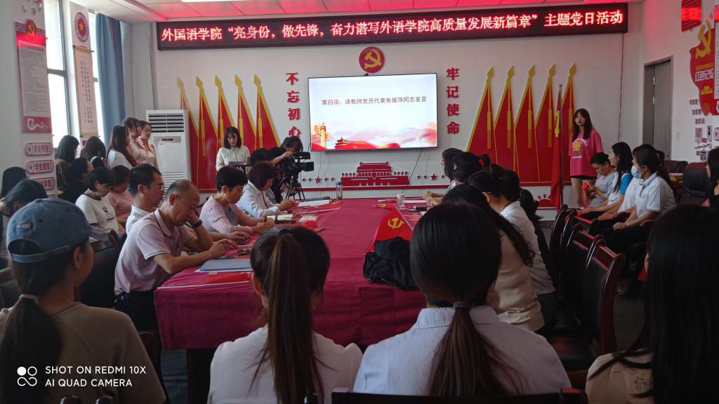 6月29日下午,为庆祝建党101周年,我院在学院党建活动室举行了“亮身份,做先锋,奋力谱写外国语高质量发展新篇章”主题党日活动。党委组织部副部长申圆圆、学院党委书记梁艳、全体党员师生参加了活动。活动由院党委副书记许多文主持。