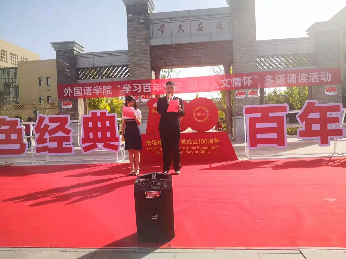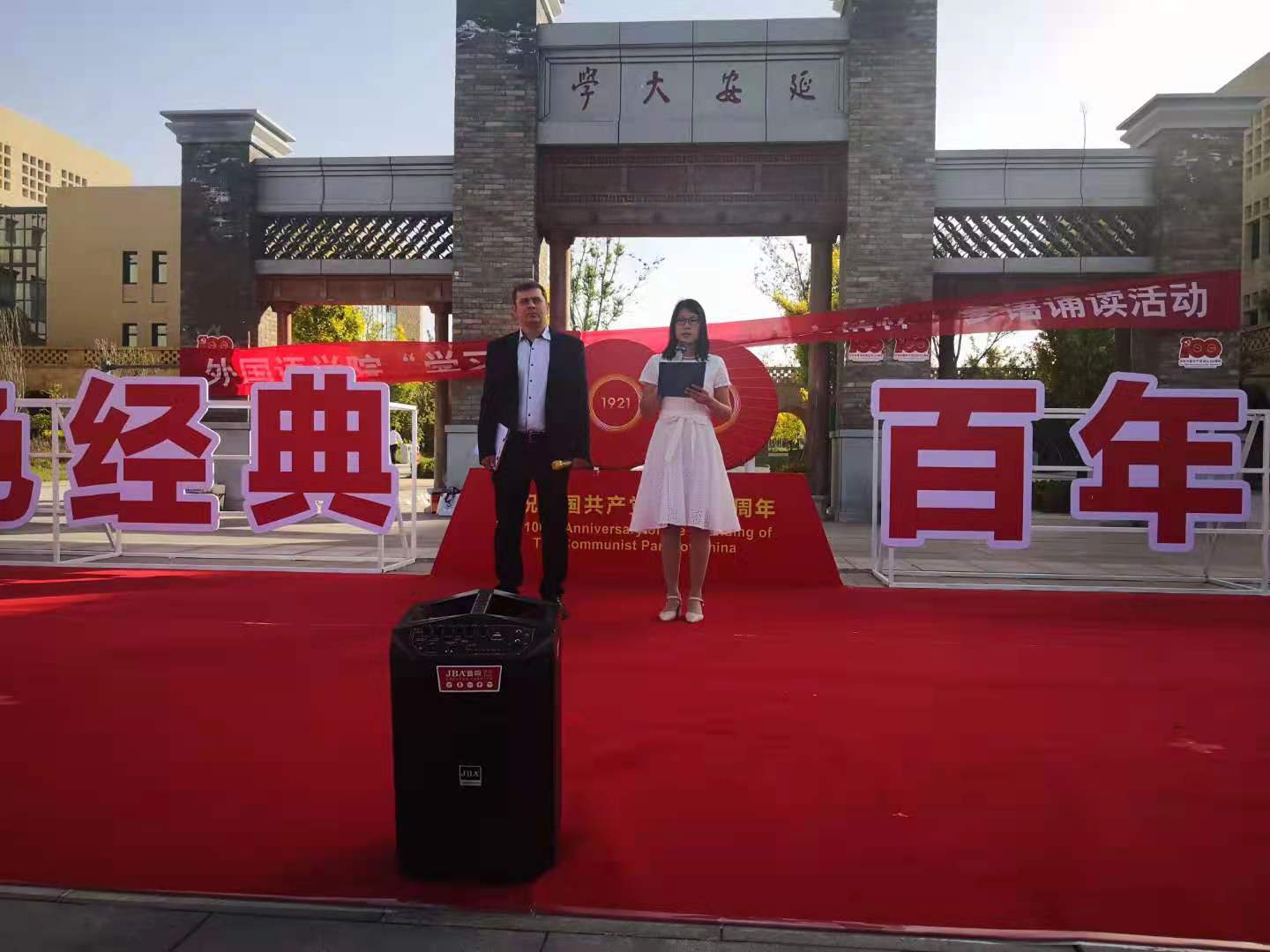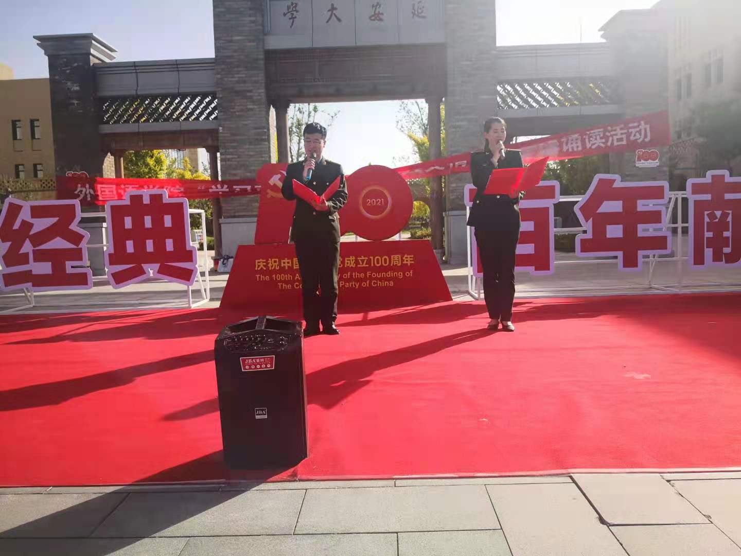 5月26日下午,公海5500线路检测在新校区“红炉”党建文化广场举行了“学习百年党史,滋润人文情怀”多语种诵读活动。学院领导班子、杨家岭社区党总支书记冯雪林、延安北京知青博物馆宣教科主任张亮和办公室主任党政军、延安科技馆展教部部长高艳萍及相关负责人、公海5500线路检测师生200余人参加了活动。活动由徐洁和吕江涛主持。