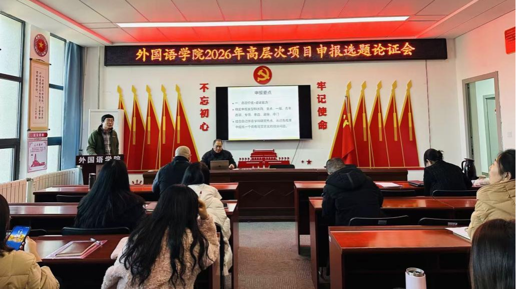 为扎实推进2026年度国家社科基金等高级别科研项目的申报工作,切实提升学院教师的选题质量与申报竞争力,2025年12月15日下午,我院在外语楼513会议室召开了2026年高层次项目选题申报专家论证会。会议特邀我校文学院杨绍固教授担任指导专家,学院科研副院长王会刚主持会议,拟申报2026年度高层次项目的20余位教师参加了本次论证会。